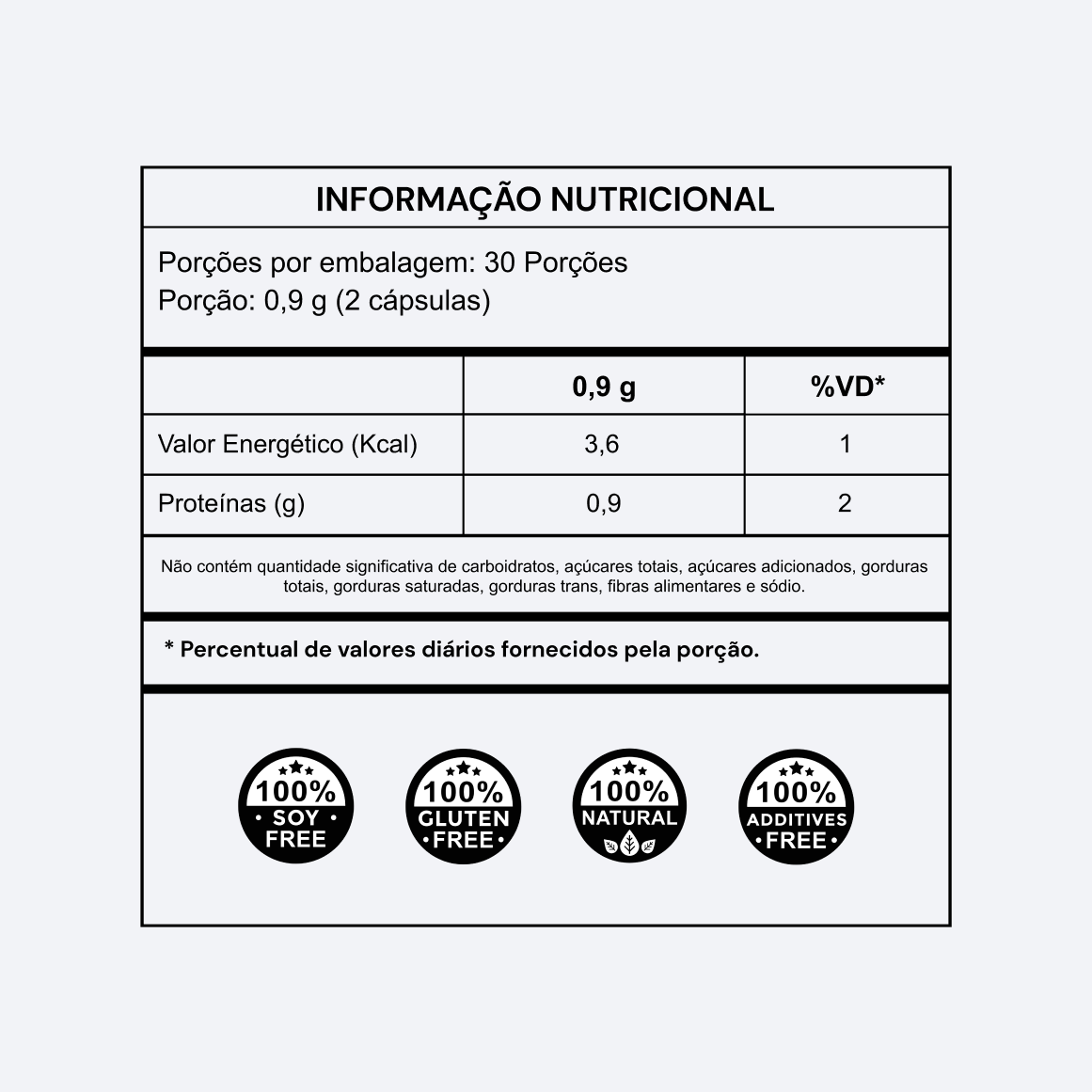 - Suporta a função muscular, modulação do sistema imunológico, regulação hormonal e saúde celular geral devido à sua alta concentração de proteínas, vitaminas do complexo B e antioxidantes, como a ficocianina.